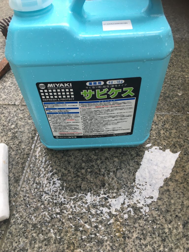![IMG_2640 (2).jpg] ▲使用した洗剤(イメージ)。反応を見ることで、どこにサビがあるか一目瞭然です。